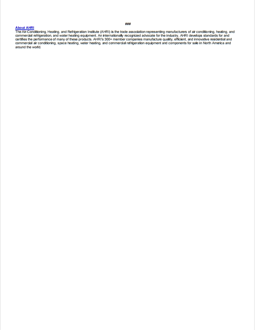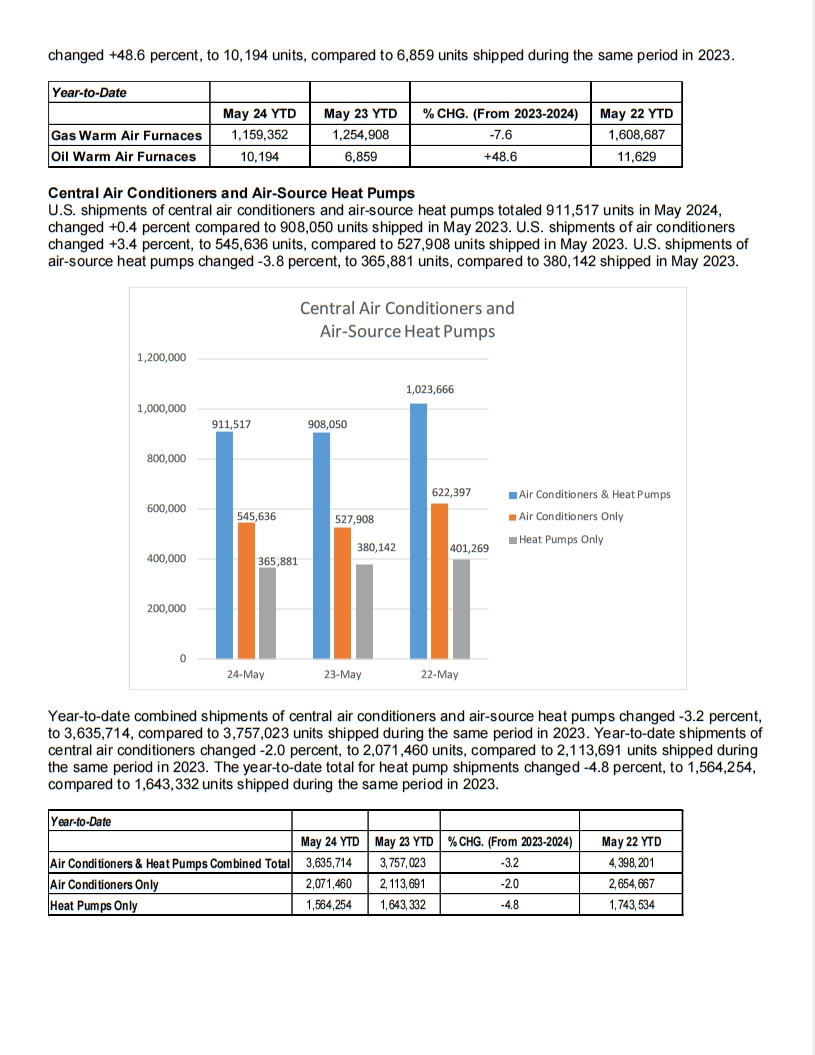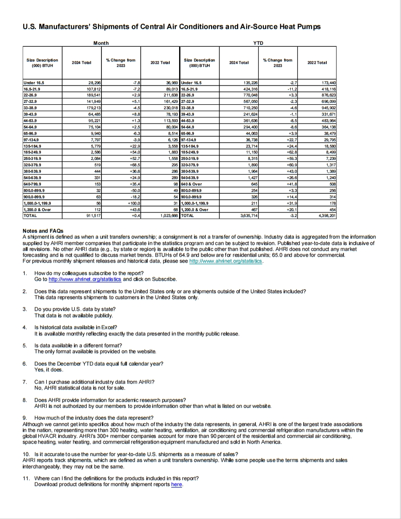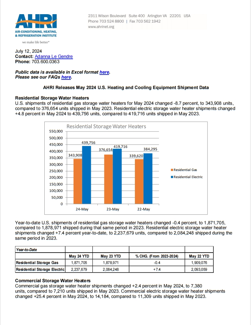 AHRI Publication des données sur les expéditions d'équipements de chauffage et de refroidissement aux États-Unis pour mai 2024